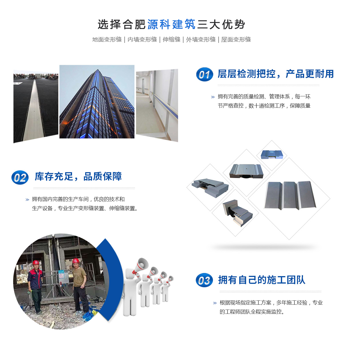 合肥源科建筑科技有限公司位于長(zhǎng)三角城市群副中心的合肥,面向國(guó)內(nèi)外生產(chǎn)銷售是專業(yè)研發(fā)及產(chǎn)銷各種建筑伸縮縫、地面變形縫、內(nèi)外墻變形縫等裝置。參與了省內(nèi)大型工程(醫(yī)院、學(xué)校、工廠、大型商場(chǎng)超市等)建設(shè),是諸多建設(shè)單位和設(shè)計(jì)學(xué)院長(zhǎng)期合作單位,在建筑變形縫伸縮縫行業(yè)樹立了自己的專業(yè)形象。本公司根據(jù)建筑業(yè)的發(fā)展和用戶的實(shí)際需要,深入研制出目前國(guó)內(nèi)新型的建筑伸縮縫裝置。按照使用部位分為四個(gè)類別:樓地面變形縫;內(nèi)墻、頂棚吊頂變形縫;外墻變形縫;屋面變形縫;按照變形...